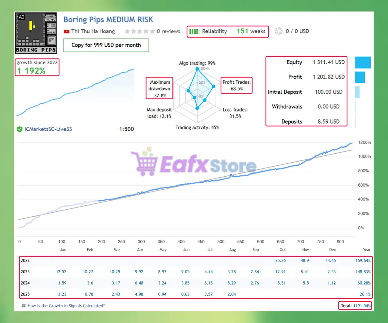 🔹Boring Pips MT4 performance verified by Myfxbook for 3 years (2022 – 2025) shows outstanding profitability and sustainable growth with an initial deposit of $100.